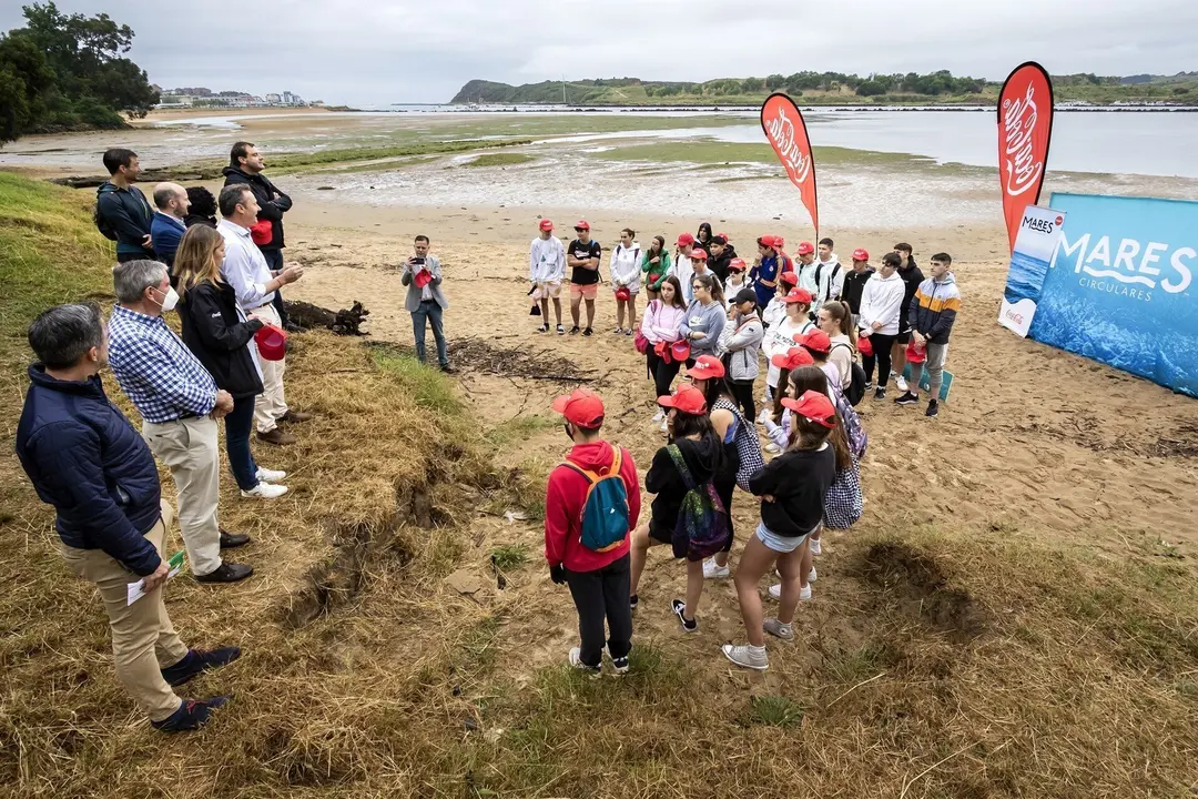 Unos 40 alumnos del IES Ría de San Martín de Suances y voluntarios de la Fundación Racing han participado este miércoles en la jornada de limpieza de la playa de La Riberuca de este municipio, organizada por el proyecto 'Mares circulares', que se ha saldado con la retirada de 123 kilogramos de residuos plásticos fundamentalmente.