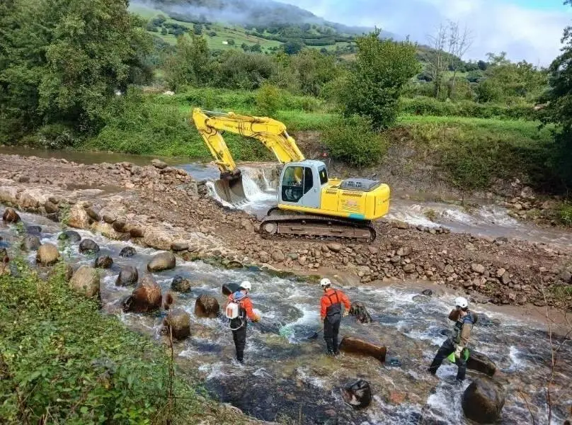 Estos trabajos se ejecutan a través de la empresa pública Tragsa, dentro del programa de recuperación fluvial y mejora de la continuidad en el ámbito de la Confederación Hidrográfica del Cantábrico.