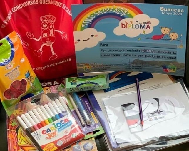 El Ayuntamiento de Suances ha entregado este fin de semana cerca de un millar de lotes infantiles a niños de entre 2 y 12 años, que han recibido en su domicilio un kit con material escolar y una mascarilla infantil, así como un diploma que acredita su "comportamiento ejemplar" durante estos días de cuarenta.