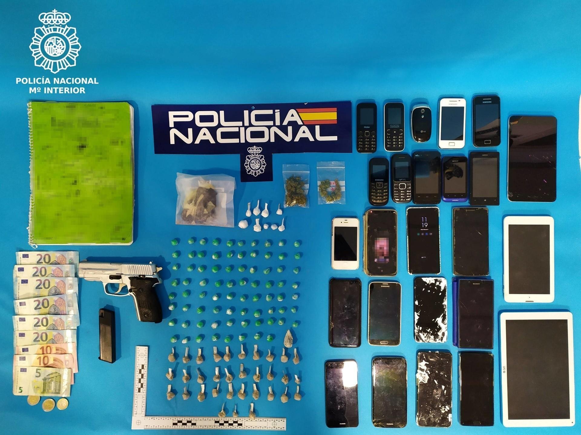 Finalmente, el pasado día 9 por la mañana agentes de la Brigada Local de Policía Judicial de Torrelavega detuvieron a los sospechosos y registraron su domicilio, donde diversas dosis preparadas para la venta de cocaína y heroína, cogollos de marihuana, 28 teléfonos móviles, varias tablets, dinero en efectivo y diverso material destinado a la actividad ilícita.