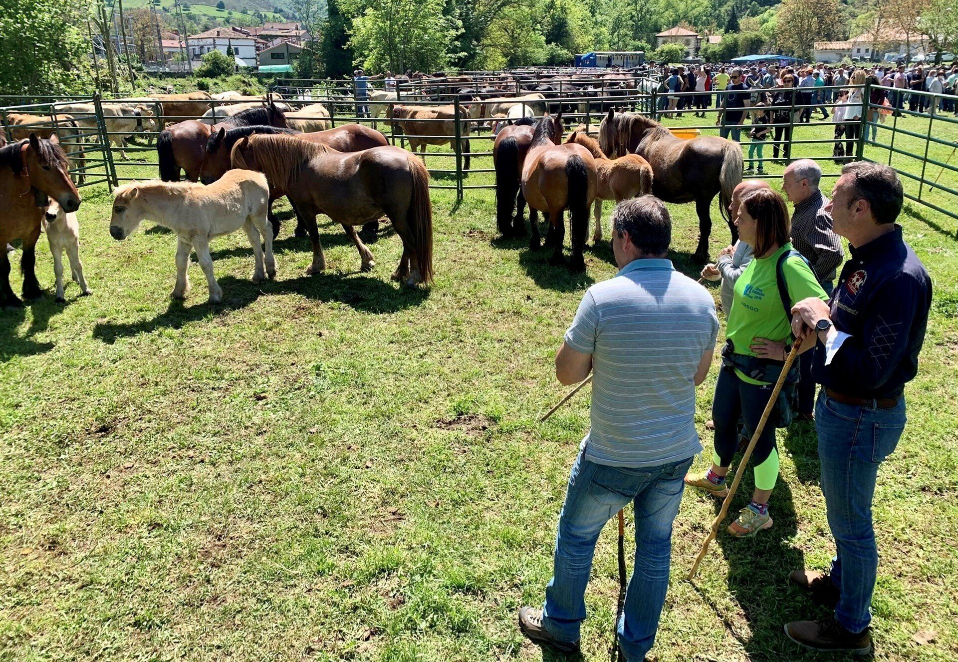 La feria ganadera de Bárcena de Pie de Concha ha congregado este sábado en la finca El Rocío a más de un millar de cabezas de ganado, entre vacas, caballos y cabras.