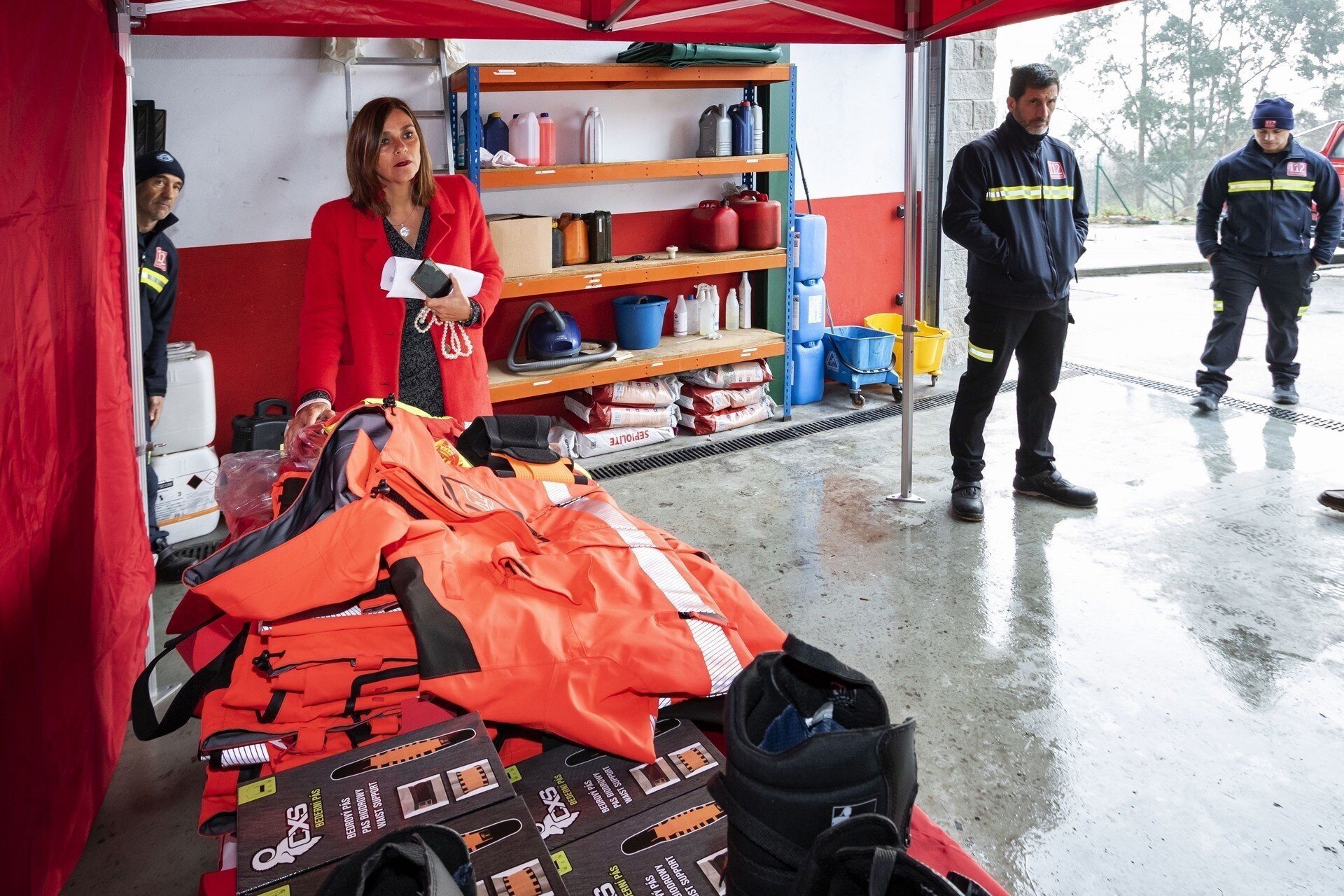 La consejera de Presidencia, Interior, Justicia y Acción Exterior, Paula Fernández, ha entregado este miércoles las nuevas equipaciones a los profesionales del servicio en el Parque de Bomberos del 112 con sede en Los Corrales de Buelna.