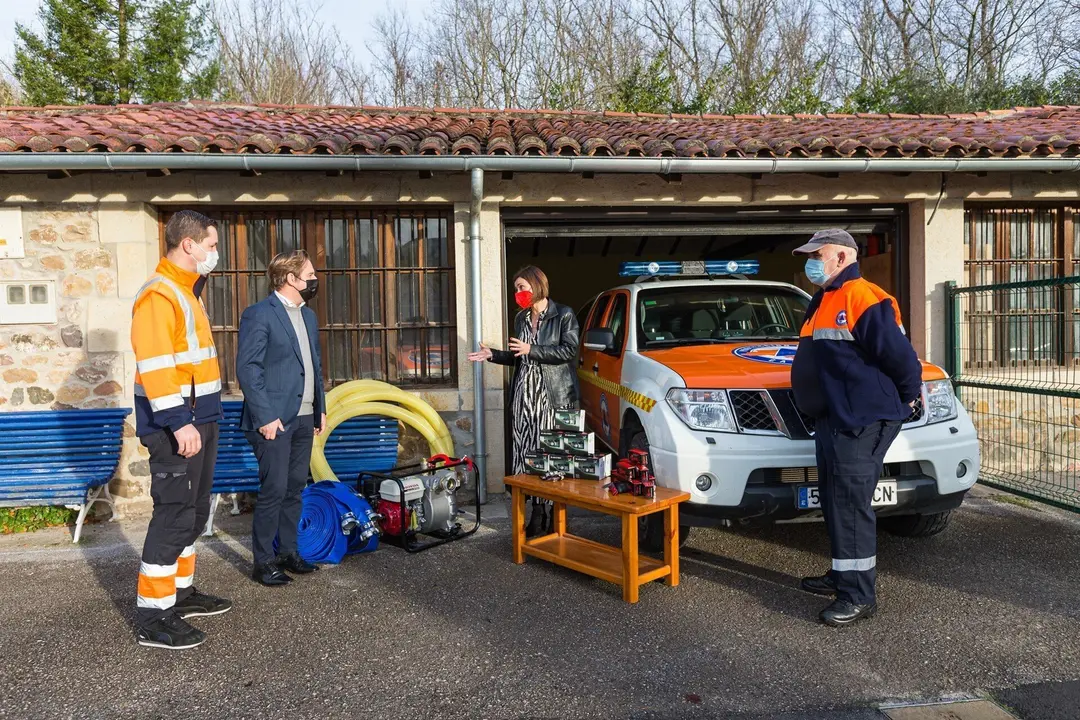 La consejera de Presidencia, Interior, Justicia y Acción Exterior, Paula Fernández (PRC), acompañada por el alcalde de Reocín, el también regionalista, Pablo Diestro, ha hecho entrega este viernes del nuevo material a la Agrupación de Protección Civil del municipio.