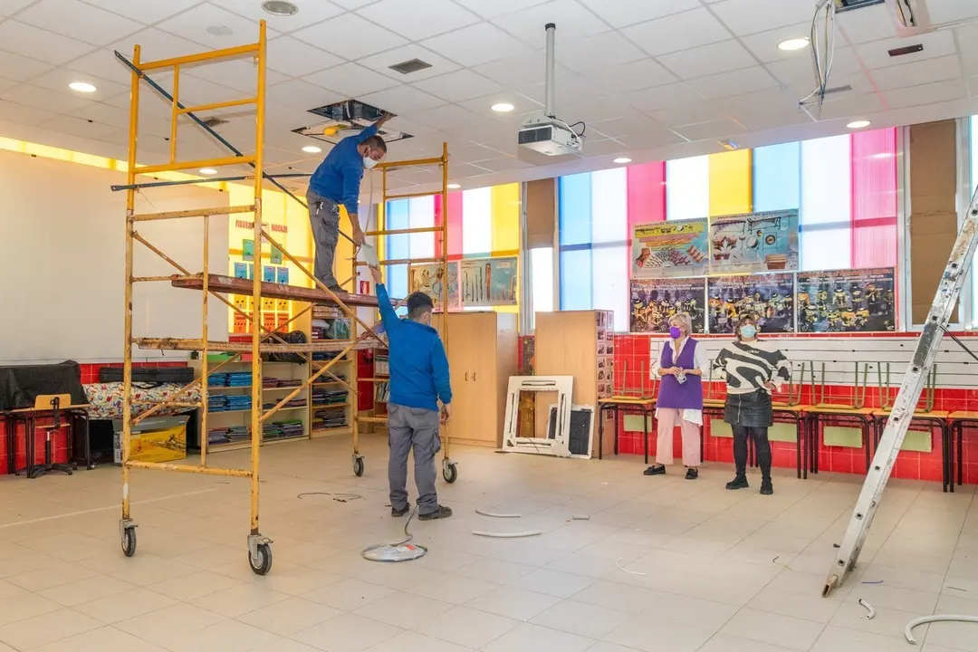 Los trabajos se desarrollan durante las vacaciones escolares de Navidad y suponen el cambio integral del sistema de calefacción por otro de climatización, ya que el existente no garantizaba una adecuada eficiencia energética, y tampoco permitía asegurar una correcta temperatura de las instalaciones para que se pudiesen desarrollar las clases de manera cómoda para los niños.