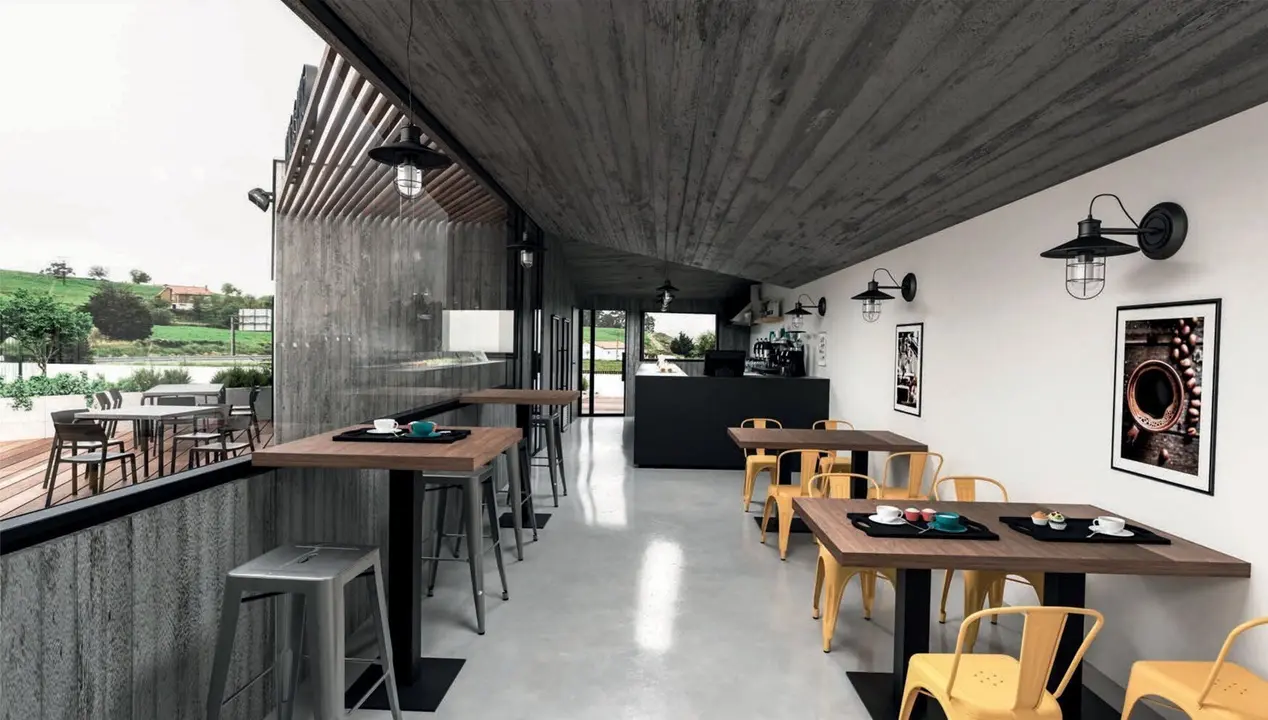 El quiosco-cafetería con terraza se sitúa en un lugar abierto, accesible y flexible, donde se mezclan todo tipo de actividades lúdicas, de ocio y deportivas, ya que está pensado como un espacio de uso común disfrutable por una amplia variedad de grupos de edad.