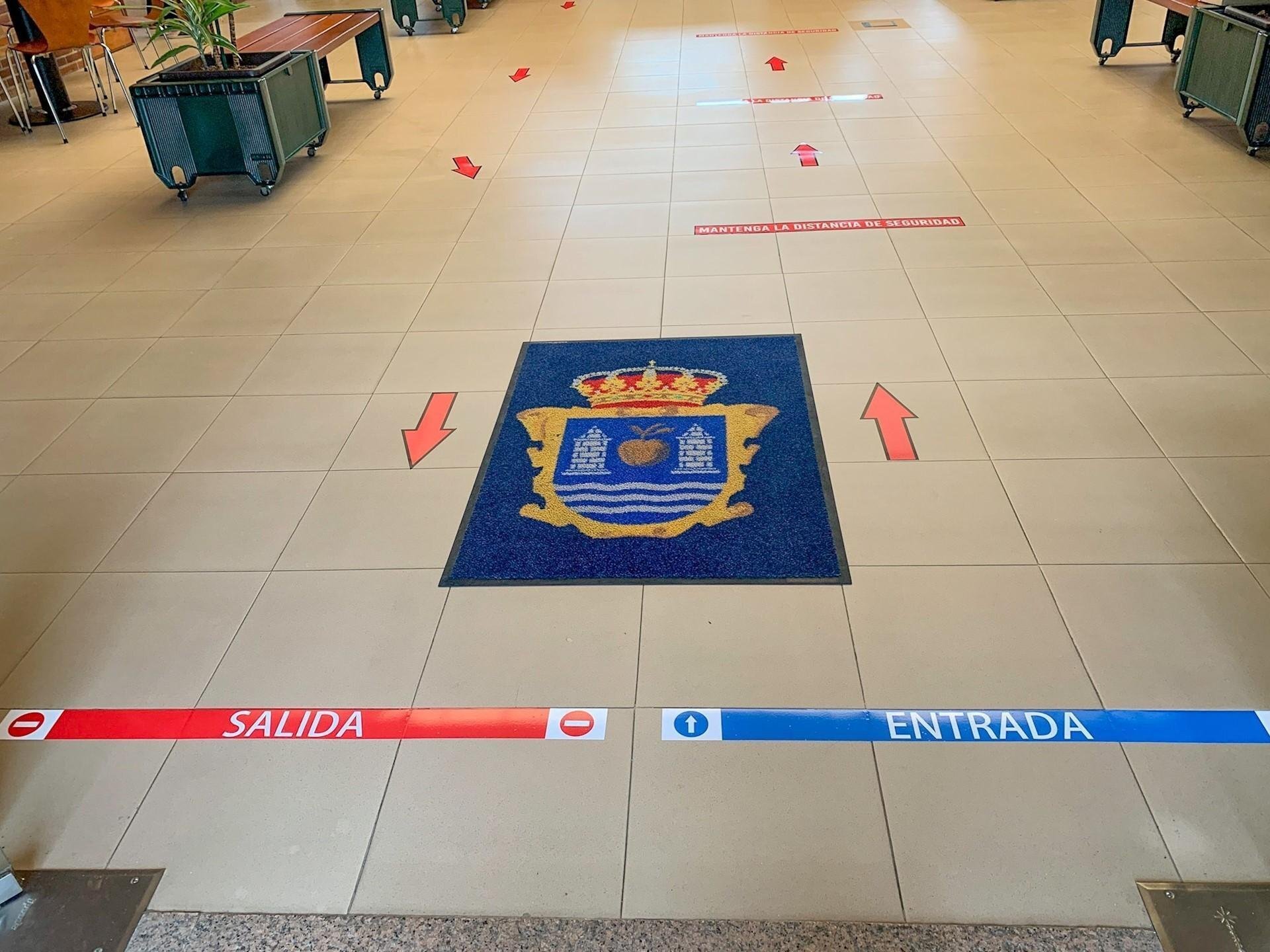 También ha insistido en la necesidad de seguir las indicaciones contenidas en los paneles informativos instalados en el vestíbulo del Ayuntamiento con las recomendaciones sanitarias y de seguridad, así como el uso de los pasillos marcados en el suelo para facilitar las entradas y salidas de las personas guardando la distancia de seguridad.