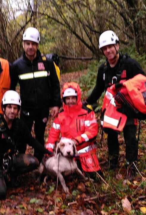 Bomberos del Gobierno de Cantabria ha rescatado este lunes a un perro caído en una sima de entre 15 y 18 metros en Arenas de Iguña.