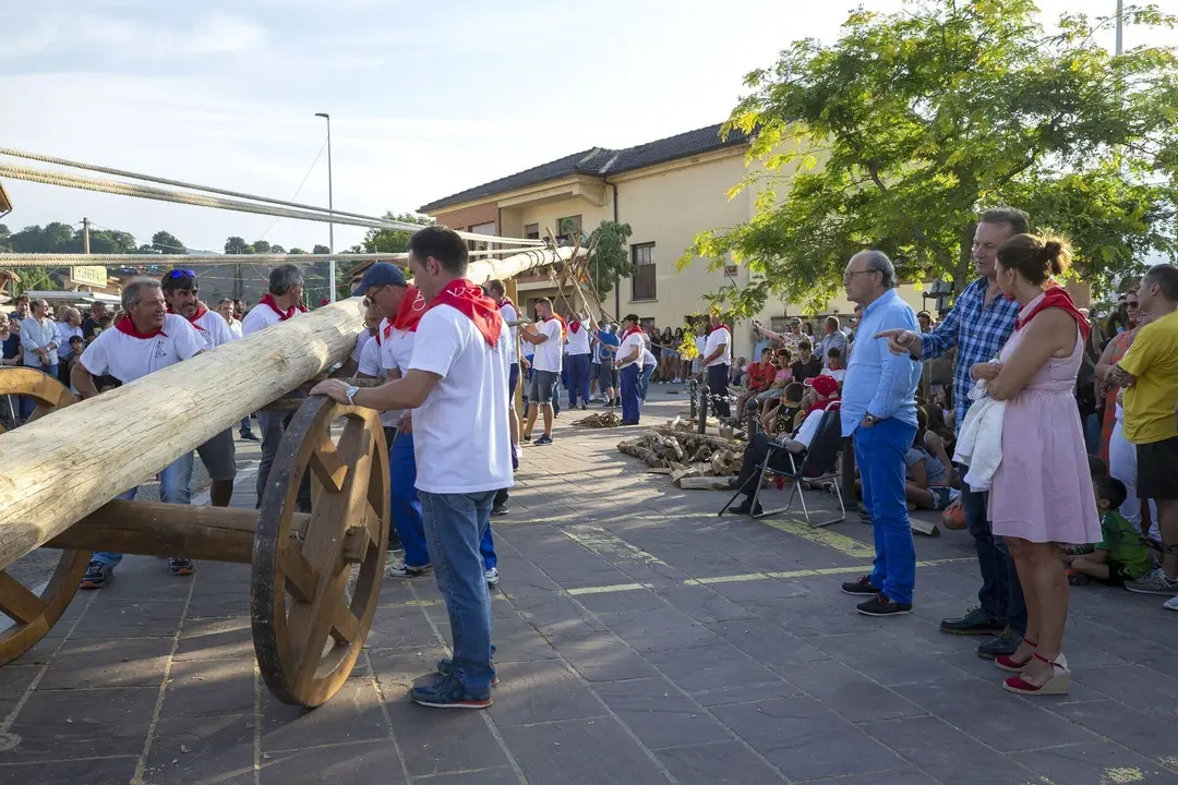 El izado, una tradición milenaria, corrió a cargo de los vecinos del pueblo que mediante la unión de sus fuerzas pusieron en pie un tronco que este año superaba los 30 metros.