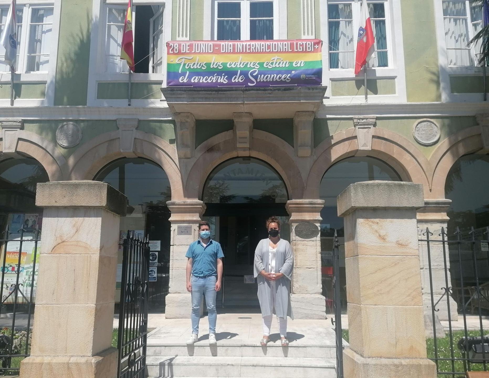Los concejales de Igualdad y Juventud, Raquel Fernández y Francisco Gascón, respectivamente, han explicado que este gesto simboliza el apoyo institucional por la igualdad y la no discriminación, así como la apuesta de Suances por convertirse en un municipio "libre de LGTBIfobia".