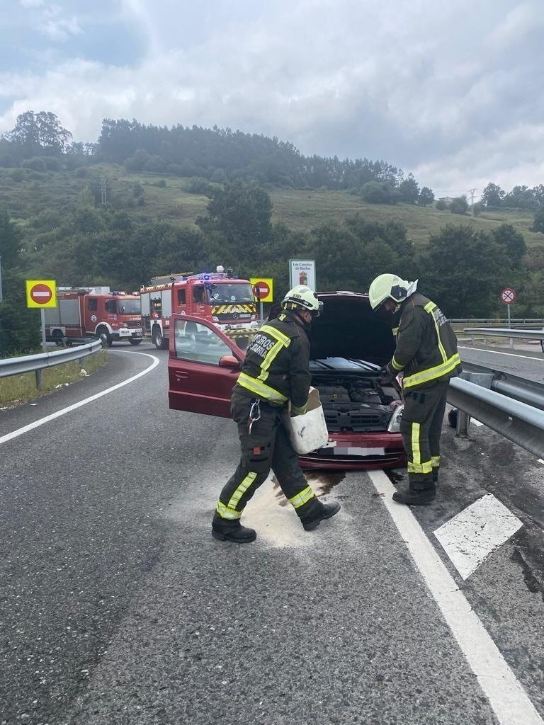 Efectivos de los Bomberos autonómicos acudieron al lugar a contener el derrame de líquido en la calzada. También intervino la Policía Local.
