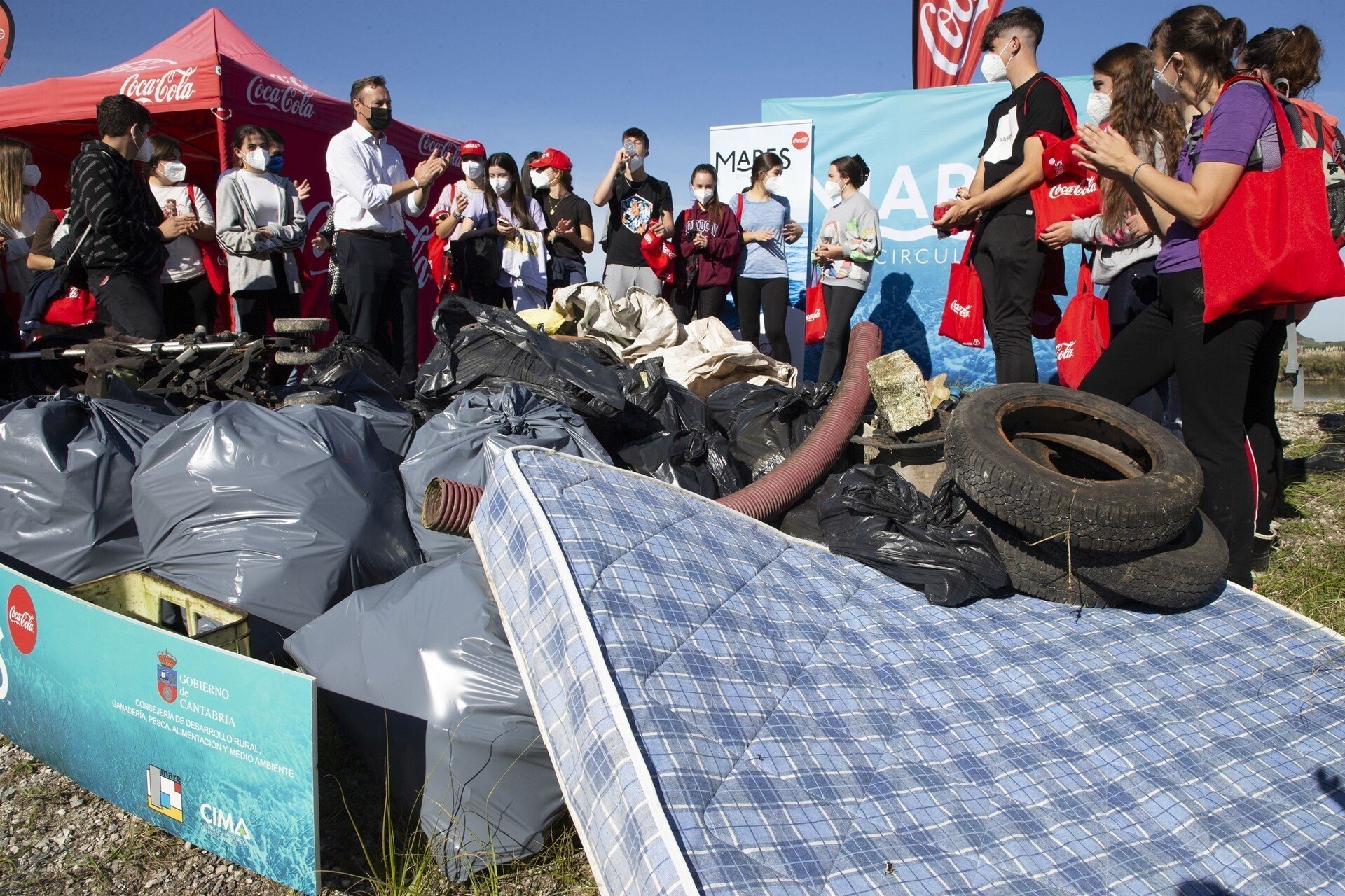 Una treintena de alumnos de Secundaria del IES José Hierro de San Vicente de la Barquera han retirado un total de 346 kilogramos de residuos depositados de forma ilegal en la ría de Requejada, en Polanco, dentro de la jornada de limpieza organizada por el proyecto Mares Circulares, en colaboración del Gobierno de Cantabria a través de la empresa pública MARE y el Centro de Investigación del Medio Ambiente (CIMA).