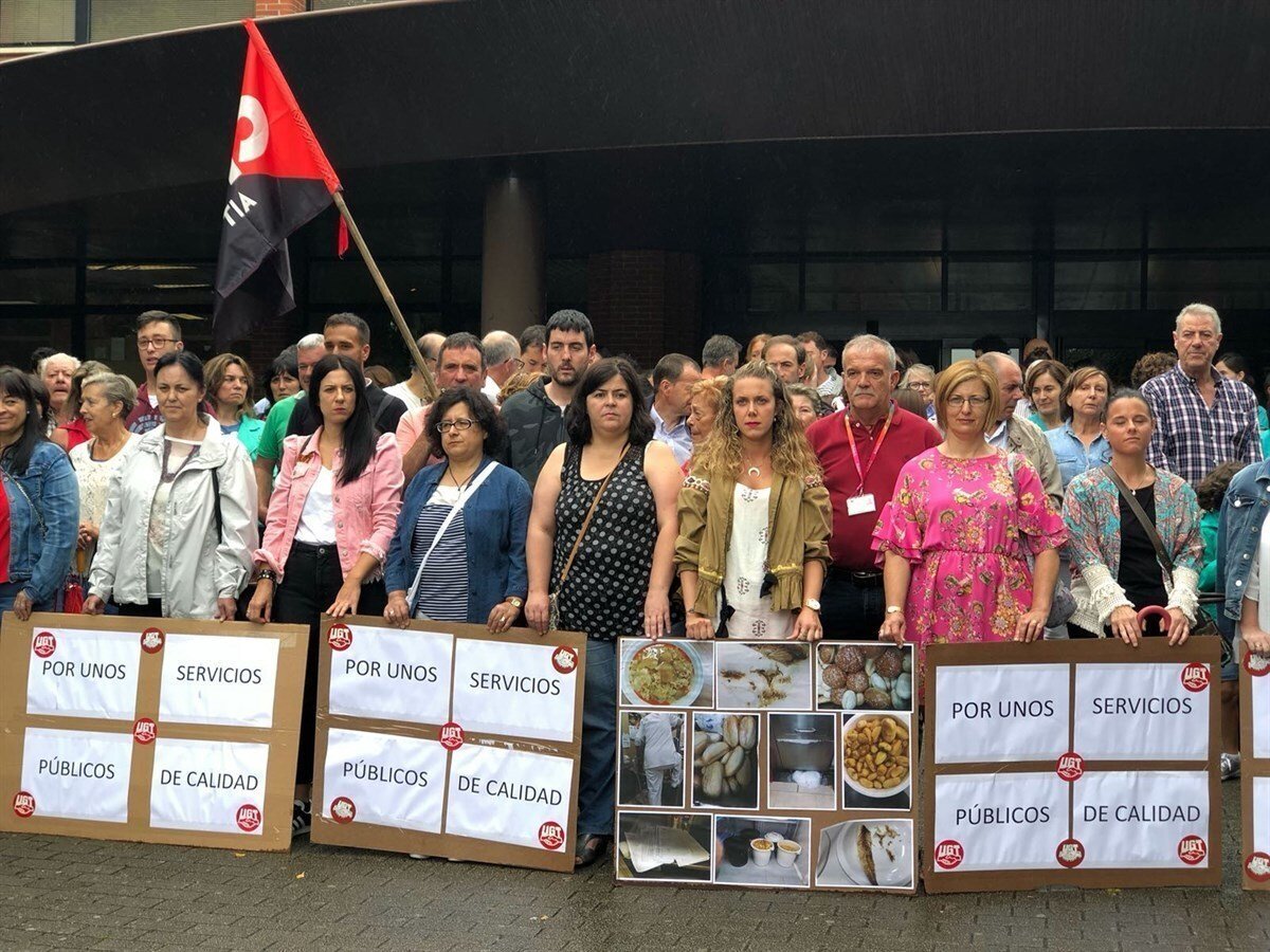 Cerca de 300 personas secundaron hoy la concentración de protesta convocada por el sindicato UGT para exigir que se ponga freno a los "reiterados incumplimientos" del pliego de condiciones por el que se adjudicó en su momento el servicio de cocina y de la cafetería del Hospital de Sierrallana y del Hospital Tres Mares a la empresa Eurest, apenas una semana después de que la concesionaria firmara un acuerdo que evitó un encierro de protesta indefinido de los trabajadores.
