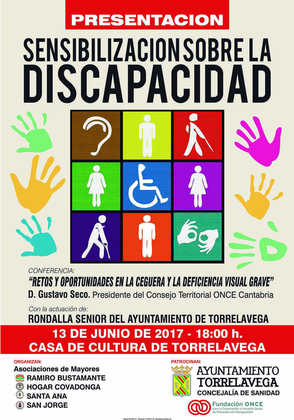 Las Asociaciones de Mayores de Torrelavega (Ramiro Bustamante, Hogar Covadonga, Santa Ana y San Jorge), con la colaboración de la concejalía de Sanidad que dirige Verena Fernández, ha organizado una conferencia sobre ‘Retos y oportunidades en la ceguera y la deficiencia visual grave’ a cargo del presidente del Consejo Territorial de la ONCE en Cantabria, Gustavo Seco. La charla, ha explicado Verena Fernández, tendrá lugar el martes, 13 de junio, a las 18 horas, en la Casa de Cultura de Torrelavega, y servirá de presentación de los Talleres de ‘Sensibilización sobre la discapacidad’ que monitores de la Fundación ONCE impartirán los meses de octubre y noviembre en los Centros de Mayores, y otros centros asistenciales de la zona. El objetivo, ha subrayado la responsable de Sanidad, es “dar a conocer como podemos ayudar a las personas con discapacidad”. Fernández ha animado a todos los vecinos del municipio ha acudir a esta jornada en la que también actuará la Rondalla Senior del Ayuntamiento de Torrelavega. La entrada es libre y gratuita.