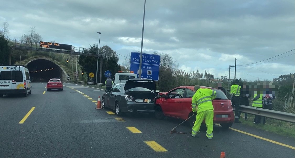 Posteriormente, una colisión en cadena en el carril que viene desde la A67, metros antes del túnel de Torrelavega, provoca actualmente el corte del carril y la circulación con precaución en la zona.