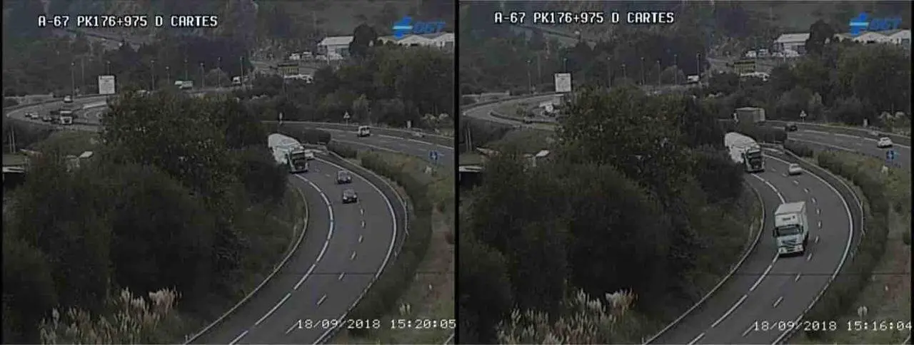 La avería de un transporte especial mantiene cortado el carril derecho de la autovía A67 sentido Santander a su paso por Cartes.