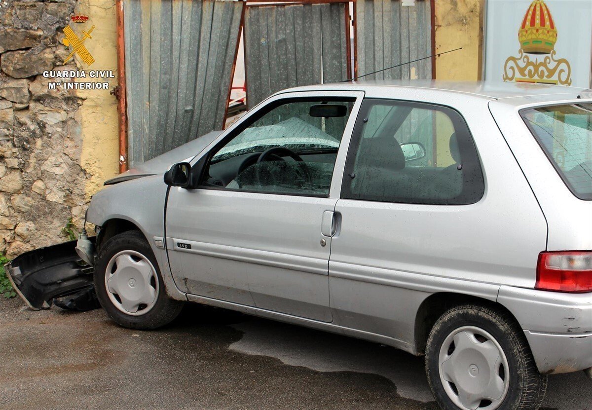 El vehículo se encontró sin llaves, sin conductor, presentando importantes daños tanto la puerta de la propiedad como en el propio coche.