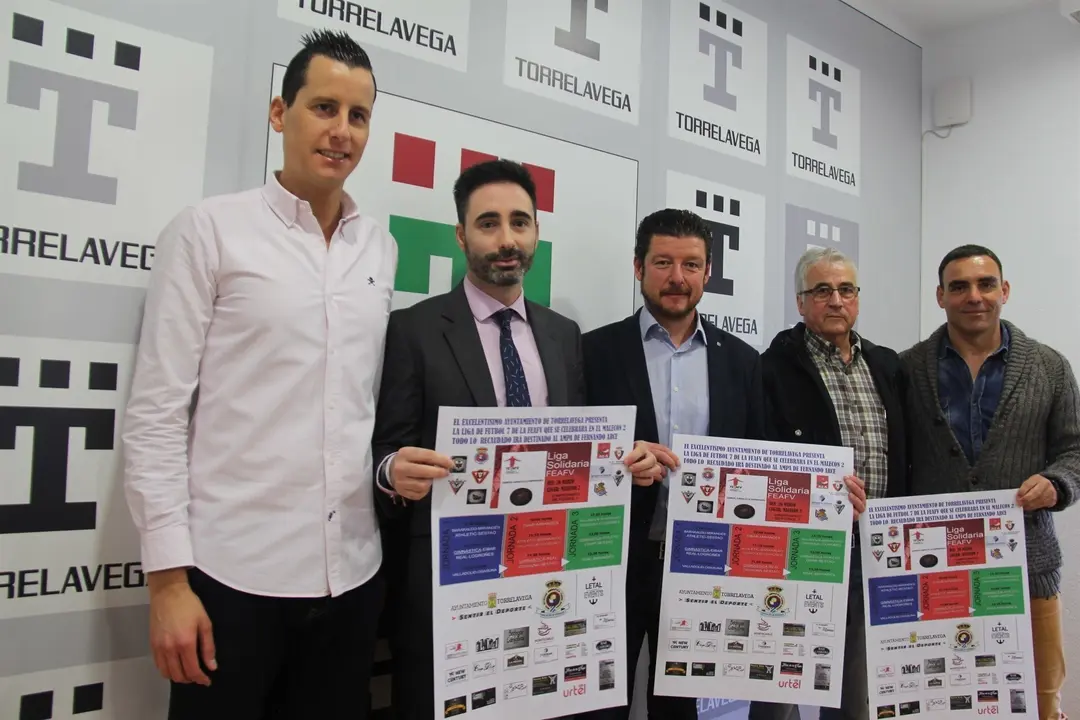 El recién remodelado campo de 'El Malecón 2' de Torrelavega será el terreno de juego en el que se dispute la Liga de Fútbol Siete de la Federación Española de Asociaciones de Futbolistas Veteranos, el domingo 26 de marzo. El concejal de Deportes, Jesús Sánchez, ha presentado hoy el evento acompañado por Adrián Bueno, de la directiva de la Real Sociedad Gimnástica, Loren Berrazueta, de Letal Events, Avelino Polanco, presidente de los Veteranos de la Gimnástica, y Javier Fernández Morante, de los veteranos de la Gimnástica. La Liga Solidaria de la FEAFV es un evento que se juega en tres sedes del norte de España entre equipos de gran calado a nivel nacional, con jugadores del Osasuna, Athletic de Bilbao, Eibar, Logroñés, Sestao, Barakaldo y los Veteranos de la Real Sociedad Gimnástica, que en la primera jornada han obtenido buenos resultados y han conseguido cuatro puntos. Se trata de una liga solidaria, donde todo lo recaudado será para la Asociación de Padres del colegio Fernando Arce, "porque hacen una labor extraordinaria" y porque es una AMPA "muy activa que realiza muchísimas actividades a lo largo del año", según el edil. La liga se disputará con partidos continuos de fútbol 7, con una duración de media hora. Participarán diez equipos que jugarán un 'todos contra todos' y la entrada cuesta dos euros, que se destinarán íntegramente a esta causa solidaria.