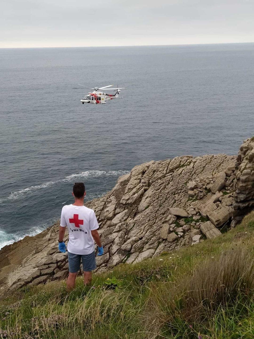 El helicóptero de Salvamento Marítimo rescata a un hombre caído en los acantilados de Tagle
