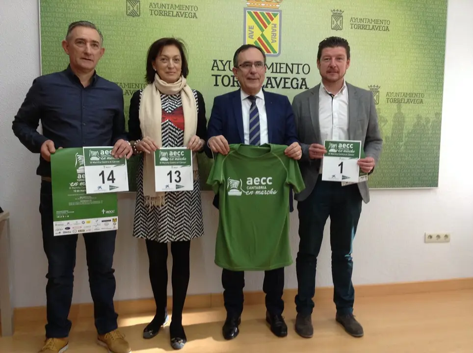 El alcalde, José Manuel Cruz Viadero, junto al concejal de Deportes, Jesús Sánchez, la presidenta de la Junta Local de la Asociación Española Contra el Cáncer de Torrelavega, Ana Barca, y Jesús Fernández; ha presentado la III Marcha Contra el Cáncer de Torrelavega que se celebrará el domingo, 12 de marzo, a partir de las 10.30, con salida y llegada en el Boulevard Demetrio Herrero. Una prueba, ha dicho Cruz Viadero, “abierta, no competitiva, para toda la familia, en la que lo importante es estar”, y que tiene como objetivos, ha subrayado, “recaudar fondos para la AECC y dar visibilidad a la lucha contra el cáncer”. El alcalde, ha mostrado su convencimiento de que será un “éxito de participación” porque “Torrelavega es una ciudad solidaria e implicada en la lucha contra el cáncer”. Respecto al dinero que se recaude con la venta de dorsales, Ana Barca ha avanzado que se destinará a “introducir” en el Hospital Comarcal de Sierrallana el voluntariado y a la contratación de un trabajador social para que lo coordine. Por su parte, Jesús Fernández ha explicado que el recorrido de la Marcha será el mismo que en la edición anterior: 6,5 km que discurrirán por la Avenida España, la calle Cicero Arteche, y Carlos Pondal, El Malecón, La Viesca con entrada por El Milagro, Puente Blanco de Torres, para entrar en la senda paralela al río hasta salir a la altura de la rotonda de la Inmobiliaria, calle José María Pereda, para terminar en el Boulevard. Los dorsales se pondrán a la venta al precio de 3 euros y se podrán adquirir en la sede de la AECC, en la Avenida de la Constitución-14, en diferentes establecimientos comerciales (Arena Centro A. Física, Gimnasio Metropolitan, Hotel Torresport, Interval running, Eco-tienda Natur, Center Olimpia, Librería Rebeca, Azalea, Academia Baile Estudio 84 y el Corte Inglés), y el mismo día de la Marcha, hasta la hora de la salida. También se ha habilitado un número de cuenta donde se pueden realizar la donaciones de dorsal cero: 2100-2153-38-0200242398. Asimismo, y como en ediciones anteriores, al finalizar la marcha, y en colaboración con el número de dorsal de cada participante, se realizará un sorteo de regalos donados por los establecimientos colaboradores. Y se efectuará reparto de chocolate, bebida y avituallamiento. Por último, tanto Cruz Viadero, como los representantes de la Junta Local de la AECC han animado a “todos” los torrelaveguenses a participar en esta Marcha que convertirá a Torrelavega en una “fiesta solidaria”.