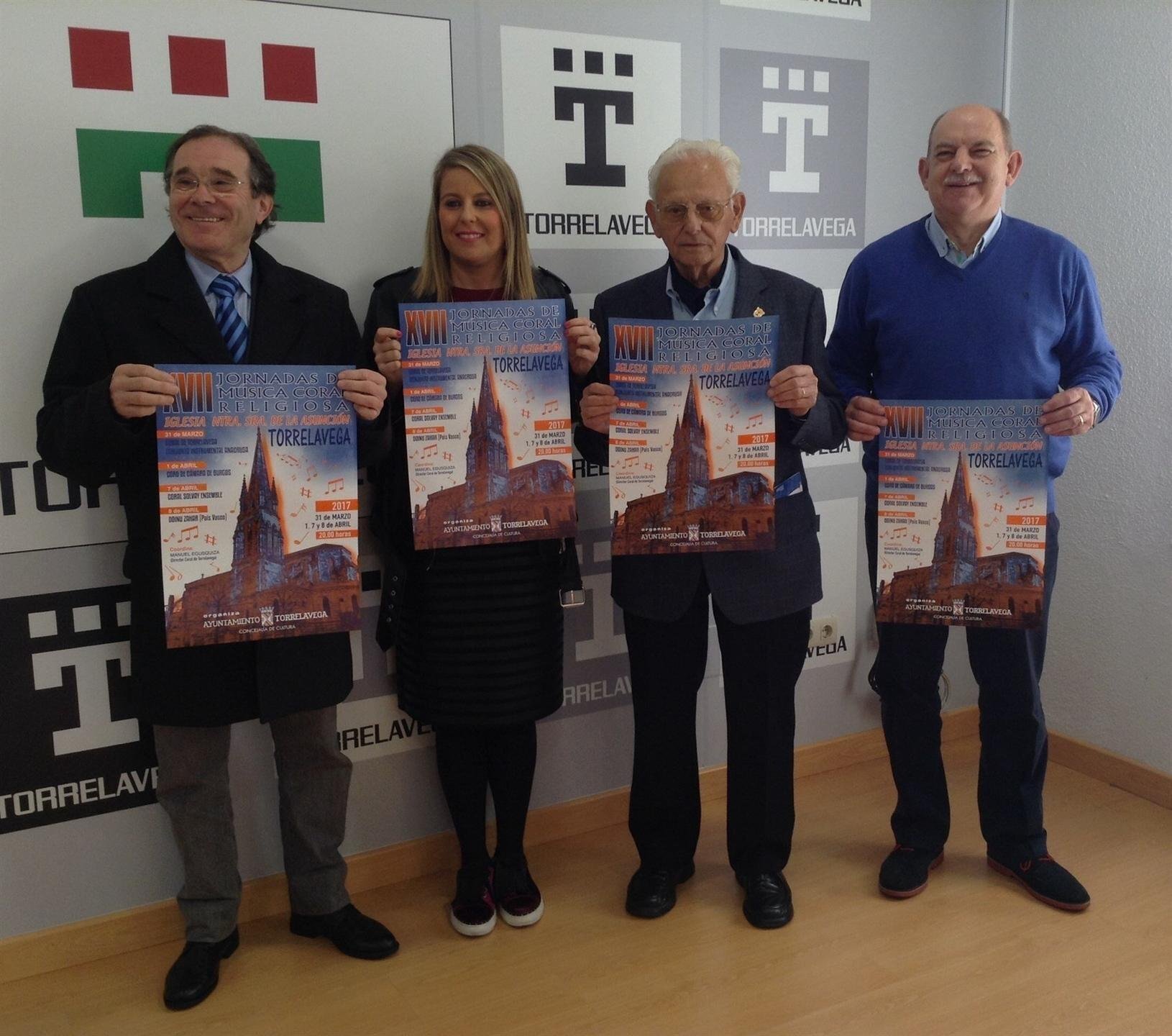 Las XVII Jornadas de Música Coral Religiosa se celebrarán en la iglesia de la Asunción de Torrelavega los días 31 de marzo, 1, 7 y 8 de abril, a partir de las 20.00 horas, con la participación de la Coral de Torrelavega, el Conjunto Instrumental Anacrusa, el Coro de Cámara de Burgos, la Coral de Solvay, Ensemble y Doinu Zahar. La concejala de Cultura, Cristina García Viñas, junto al presidente de la Sociedad Coral de Torrelavega, Jaime Revuelta, su director, Manuel Egusquiza, y representantes de la junta directiva, ha presentado las jornadas en rueda de prensa que, según han dicho, se han convertido en un "referente de la música coral religiosa a nivel nacional" y contribuyen a "enriquecer el prestigio musical de la ciudad". La encargada de inaugurar el programa el viernes 31 de marzo será la Coral de Torrelavega junto con el Conjunto Instrumental Anacrusa con un repertorio de "mucho valor musical", según la organización. El sábado, 1 de abril, actuará el Coro de Cámara de Burgos en lo que será, ha dicho Egusquiza, "una lección de música a capella". El viernes 7 lo hará el Coro Solvay Ensemble con un repertorio "muy bonito y con mucho acompañamiento". Y cerrará las Jornada el Coro de Cámara Doinu Zahar, del País Vasco. García Viñas ha destacado la "gran calidad" de una actividad que "trasciende el ámbito regional" y que es "un claro exponente de la riqueza y calidad" de la música coral de la ciudad y de las asociaciones de las entidades culturales del municipio que, como la Coral de Torrelavega, "trabajan" en la promoción y divulgación de la cultura.