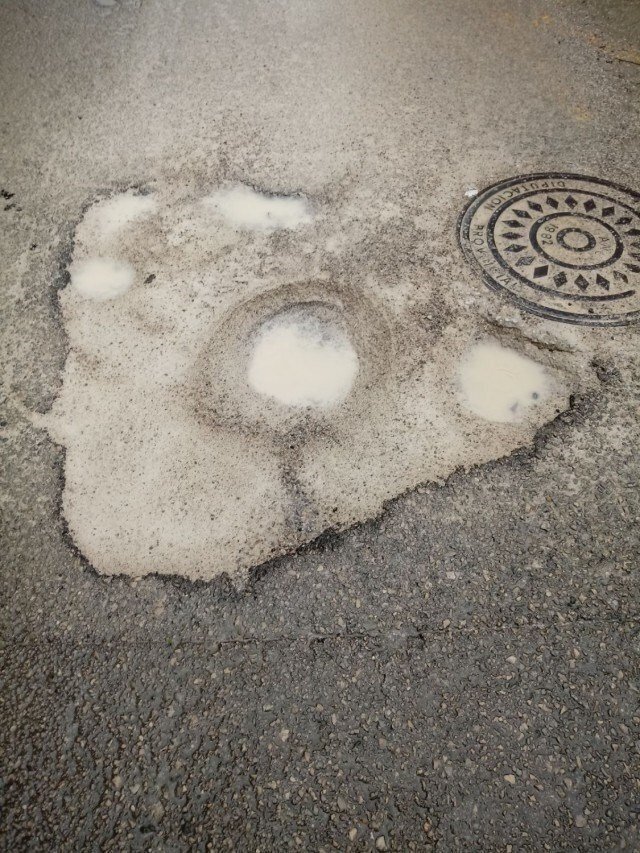 Cuando se desmontó el mercado el poste se retiró, pero el agujero "allí quedó". "Van para ocho meses y lo que en principio era un agujero ahora es un socavón que, si algún vecino se queja, se tapa con un poco de grija que el agua arrastra cuando llueve, mientras el socavón va a más y tiene que ser esquivado cuando se circula o pasea por dicha calle", han criticado.