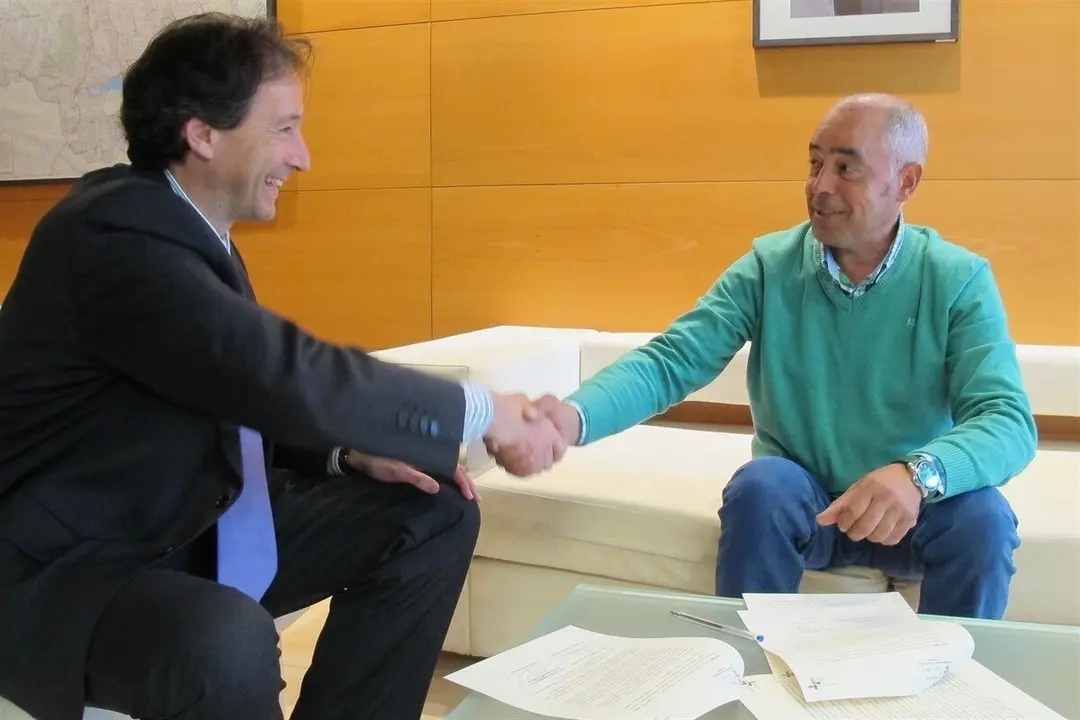 El consejero de Obras Públicas y Vivienda, José Luis Gochicoa, y el presidente de la Mancomunidad de los Valles de Iguña y Anievas, Pablo Gómez, han firmado un convenio de colaboración para el desarrollo del proyecto 'Espacio Expositivo Torres Quevedo', que estará ubicado en el colegio de La Serna (Arenas de Iguña) que lleva por nombre el del inventor cántabro.