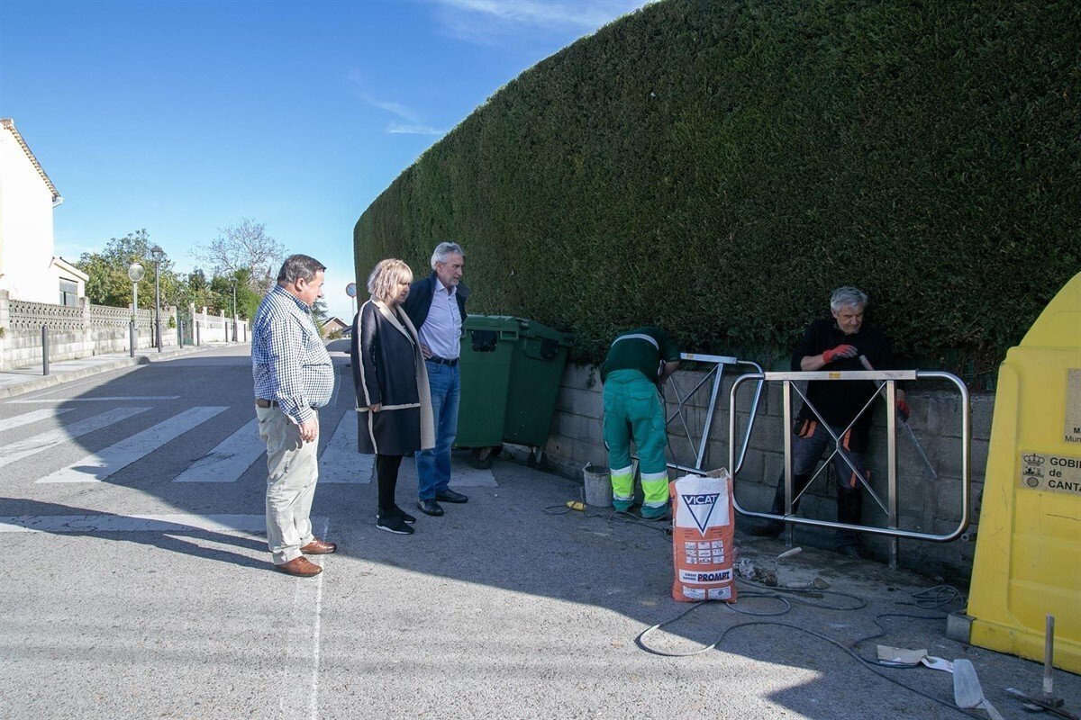 La alcaldesa ha visitado varios de los puntos donde se están colocando las nuevas sujeciones junto a los concejales de Obras y Barrios, Avelino Rodríguez Muriedas y Fernando Sañudo Pérez.