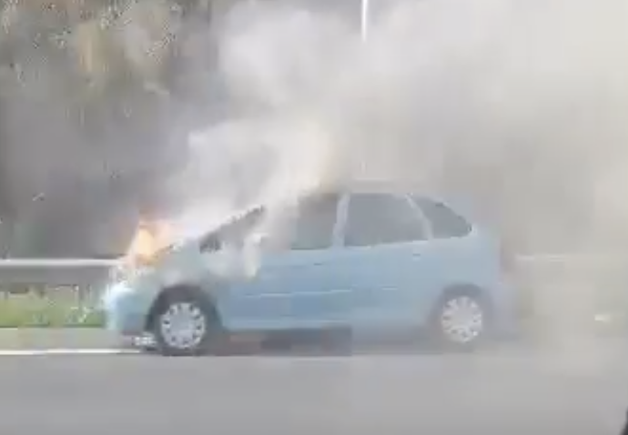 Precaución en la A67 por incendio de vehículo en el carril derecho