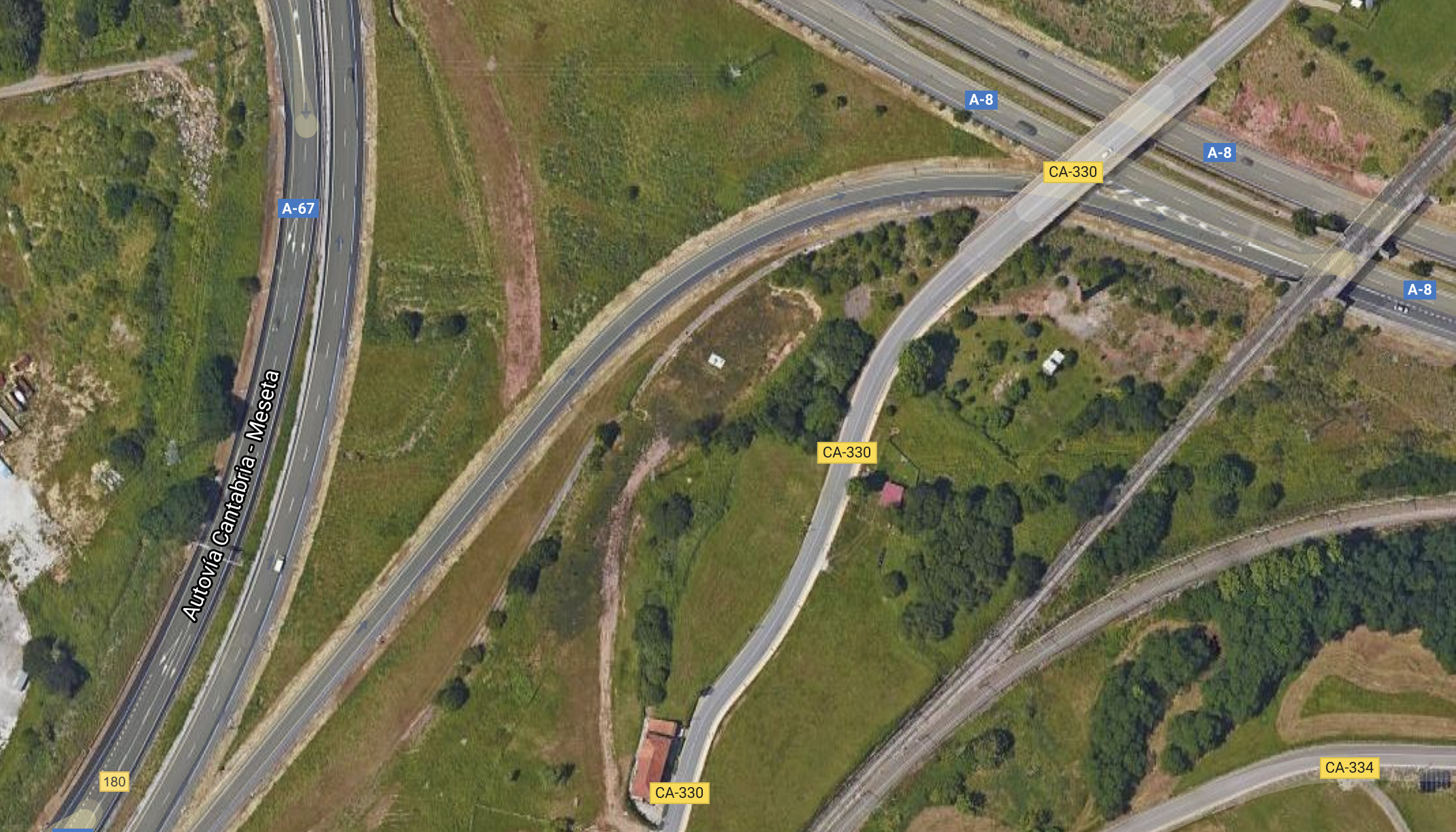 El lugar del suceso es el ramal de acceso a la A8 desde la A67 sentido costa, sentido Solares, en el punto donde se abrió hace unas semanas un acceso a las obras de la nueva autovía.
