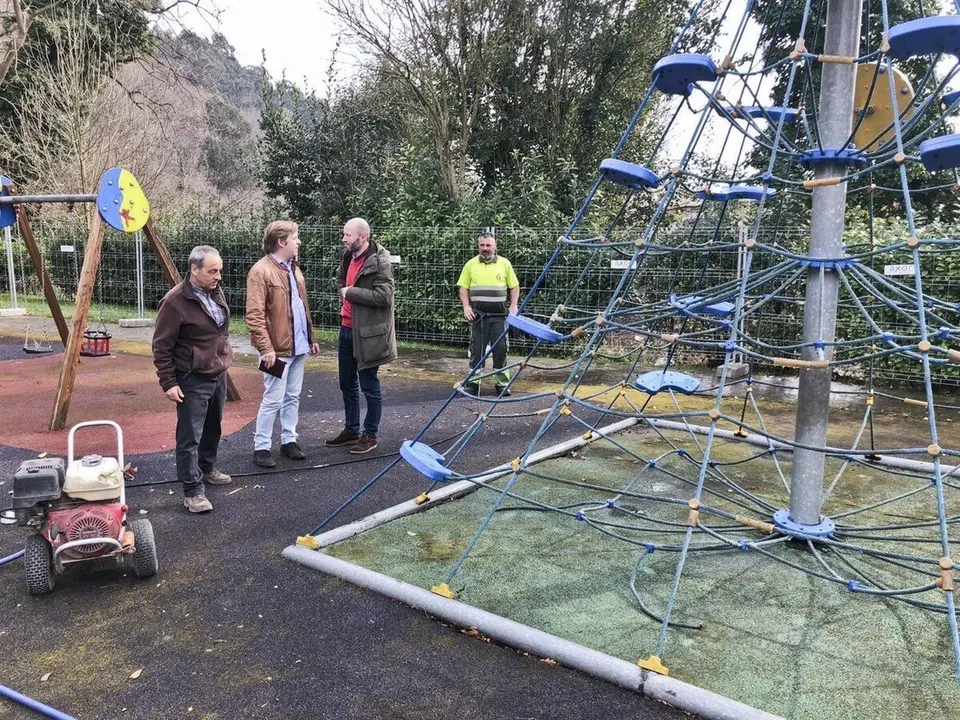 Los trabajos han comenzado por dos parques de Puente San Miguel, los de La Robleda y Concordia; y otros dos en La Veguilla, el de la Escuela y el nuevo que se hará en la calle Enseñanza.