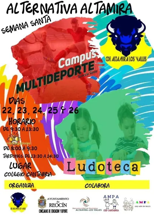 El Ayuntamiento de Reocín ha organizado un campus multideporte y una ludoteca para las vacaciones escolares de Semana Santa. Concretamente, este servicio se prestará los días 22, 23, 24, 25 y 26 de abril en el Colegio Cantabria de Puente San Miguel.