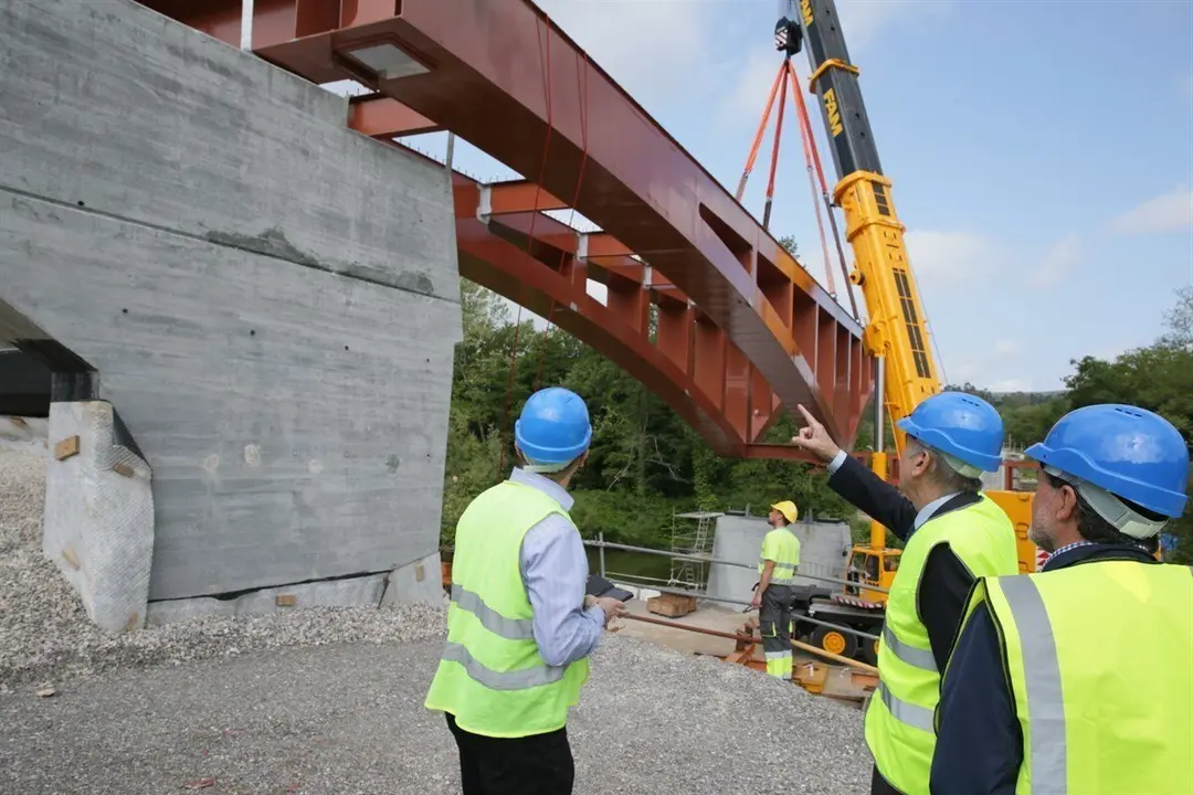 El consejero de Obras Públicas y Vivienda, José María Mazón, ha presenciado el comienzo de la fase de instalación de la estructura metálica del nuevo puente de Golbardo, la "más espectacular" de una obra cuya inversión por parte del Gobierno de Cantabria ronda los 4 millones de euros y que, según ha anunciado, podría estar concluida a finales del mes de agosto.