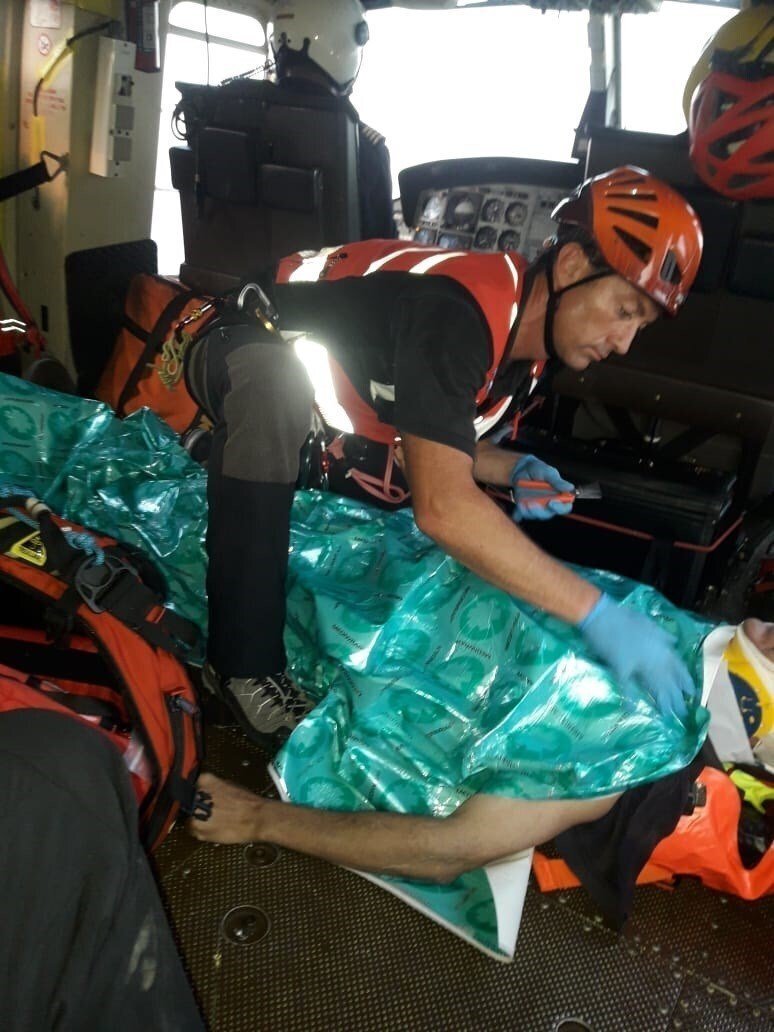 Cuando la aeronave ha llegado al lugar, han descendido hasta el herido un técnico de rescate del Gobierno y el médico, que le han realizado una primera atención de urgencia, le han estabilizado y le han izado al helicóptero.