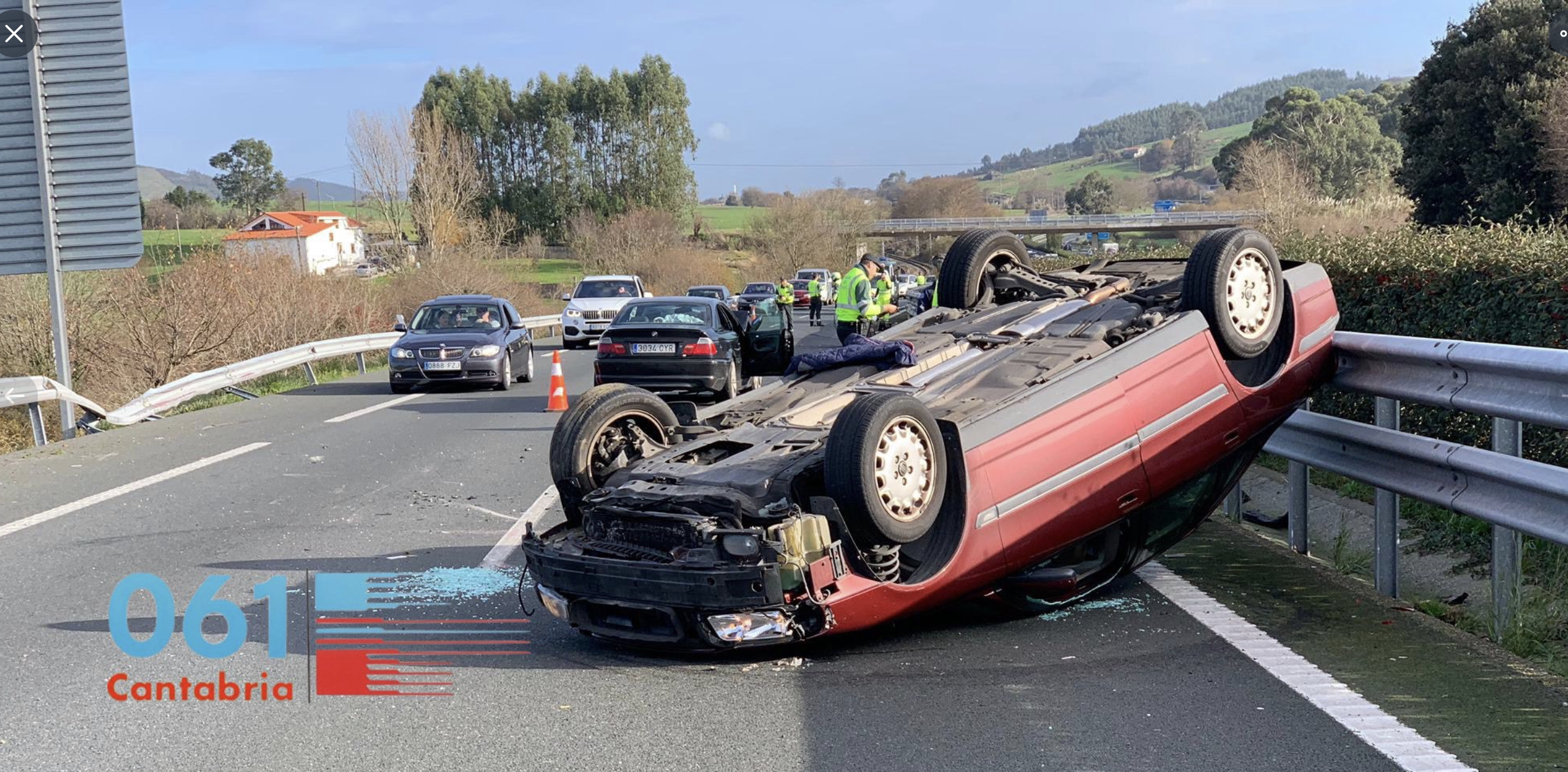 Dos personas, un hombre de de 56 años y una mujer de 37, ambos ocupantes del vehículo volcado, han sido atendidos en el lugar de los hechos por 061 Cantabria y han rechazado el traslado a centro médico "por encontrarse bien" tal como informa 061 Cantabria.