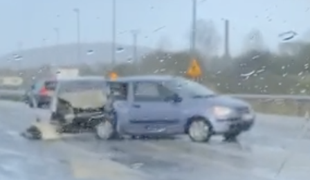 Al menos tres vehículos se han visto implicados en el accidente que vemos en las imágenes, la fuerte granizada ha sido la causante del mismo.