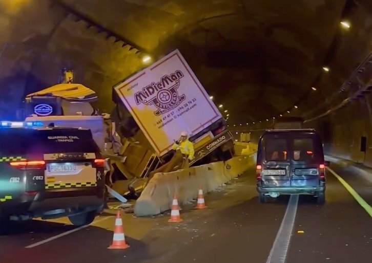 A primera hora de la mañana de este miércoles un camión perdía el control y colisionaba en la zona de obras del túnel de la autovía A67 a su paso por Los Corrales de Buelna sentido Reinosa.