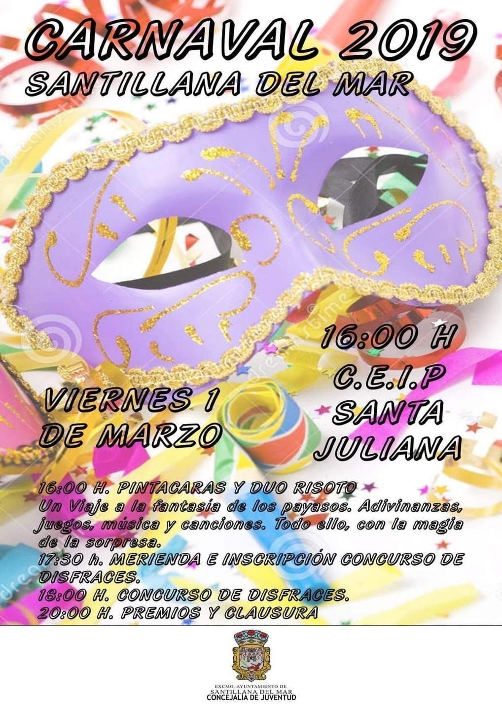 El Ayuntamiento de Santillana del Mar, a través de la Concejalía de Juventud, ha organizado para este viernes, 1 de marzo, una gran fiesta de carnaval que se celebrará desde las 16.00 hasta las 21.00 horas en las instalaciones del colegio público Santa juliana.