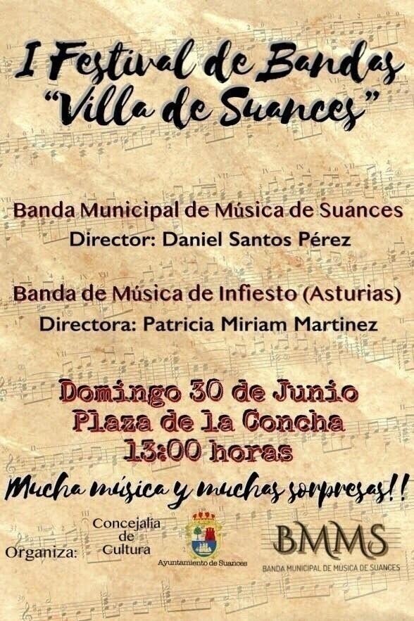 La Plaza de La Concha de Suances acogerá este domingo, 30 de junio, una propuesta cultural muy especial, el primer Festival de Bandas Villa de Suances.