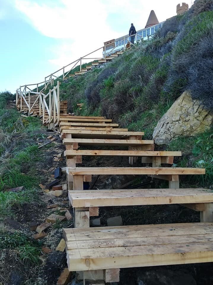 La Playa de Los Locos de Suances lucirá este verano una nueva y renovada imagen ya que el Ayuntamiento está realizando obras de mejora en los accesos al arenal que incluyen la construcción de unas nuevas escaleras de madera.