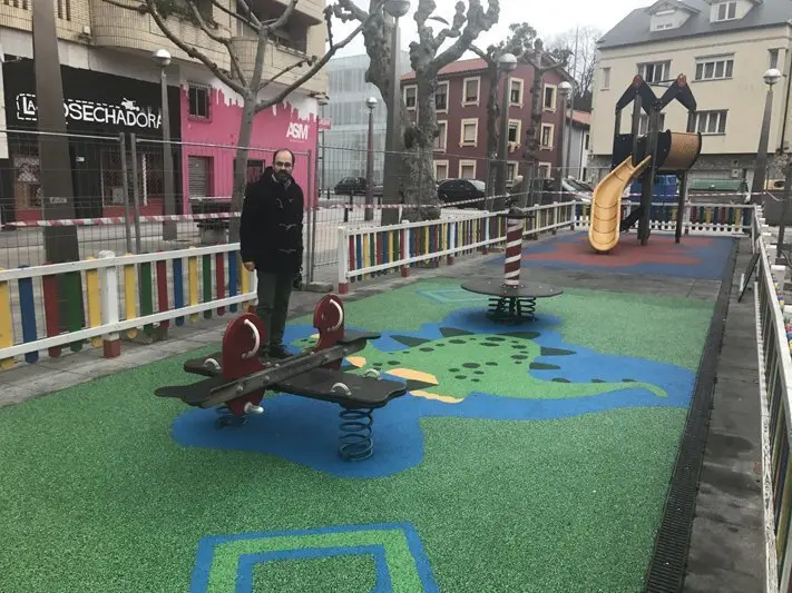 A partir del próximo lunes los más pequeños podrán volver a disfrutar del parque infantil ubicado en la Plaza ‘Juan José Ruano’, de La Inmobiliaria, uno de los más concurridos de Torrelavega, que ha sido objeto de unas obras de mejora para sustituir el antiguo pavimento de loseta, que se utilizaba hace unos años, por un nuevo suelo de goma mucho más higiénico y mucho más seguro. Así lo ha explicado el concejal de Parque y Jardines, José Luis Urraca Casal, que esta mañana ha visitado el remate final de esta actuación que estará finalizada para el próximo lunes, y que según el edil, el nuevo suelo de caucho sintético elástico, además de incrementar la seguridad del parque para los niños, es mucho más colorido, con dibujos y elementos llamativos que lo hacen más atractivo para la mirada de los más pequeños. Una actuación que forma parte de una batería de remodelaciones llevada a cabo también en otros parques infantiles, como el de la Avenida de Bilbao (Sierrapando, junto al área comercial), el de CP Pintor Escudero Espronceda (Tanos) y el de CP Mies de Vega, y que, en conjunto, supone una inversión de unos 15.000 euros para el cambio del pavimento de estos recintos infantiles. En este sentido, Urraca Casal ha avanzado que se está evaluando llevar a cabo otras mejoras de parques infantiles, a través del cambio del suelo, en otros lugares de Torrelavega en los que aún no se ha procedido a sustituir el pavimento y que éstas se desarrollarían a lo largo de 2017. Todo esto se suma, ha indicado el edil, a otras actuaciones que se han llevado a cabo, recientemente, en la colonia de Santo Domingo, espacio que se ha dotado de un parque infantil mediante una inversión de 9.600 euros y, otra actuación, que acaba de finalizar, en el parque infantil de Ganzo, dotándolo de un columpio de integración. Además, en este recinto también se ha instalado una nueva fuente y un banco, mediante una inversión de 4.600 euros. En este punto Urraca Casal ha recordado que el equipo de gobierno se comprometió a que todas las ampliaciones que se llevaran a cabo en los parques infantiles contendrían elementos de integración, para que puedan jugar a la vez niños con o sin discapacidad, y eso es lo que estamos haciendo, ha remarcado el responsable municipal de esta área.