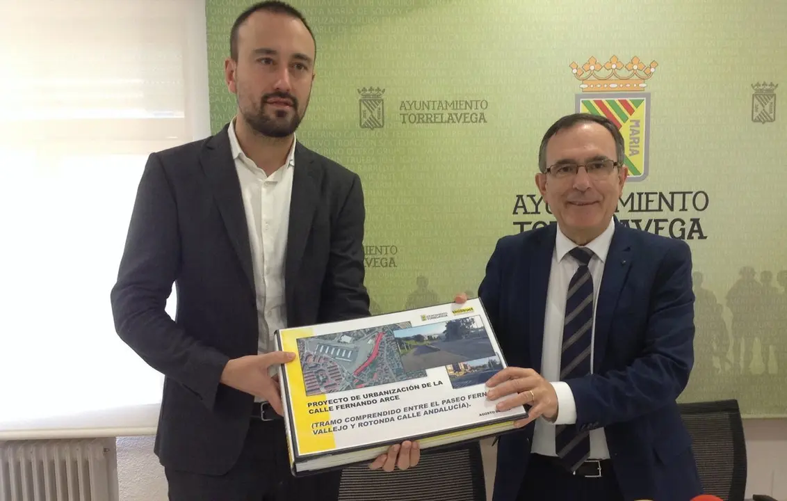 El alcalde, José Manuel Cruz Viadero, junto al primer teniente de alcalde, Javier López Estrada, han presentado el proyecto de mejora “integral” de la Avenida de Fernando Arce, entre el Paseo de Fernández Vallejo y la rotonda de la calle Andalucía, en Nueva Ciudad, que tendrá un presupuesto de 867.167 euros y un plazo de ejecución de seis meses. Una actuación “importante y muy completa”, han afirmado, que “transformará” esta calle de la ciudad en una zona “urbana para el disfrute” de los ciudadanos y que, además, permitirá la “integración” de esta parte de Nueva Ciudad y de Tanos con el centro de la ciudad. Según ha explicado Cruz Viadero, el proyecto saldrá a licitación en las próximas semanas, una vez se publique en el Boletín Oficial de Cantabria, y se prevé que los trabajos puedan iniciarse en el plazo de tres meses. También ha destacado que se trata de una de las actuaciones comprometidas con el PP para la aprobación de los Presupuestos de 2016. “Cuando el equipo de gobierno PSOE-PRC adquirimos un compromiso lo cumplimos”, ha dicho. Respecto a las características de la actuación, el alcalde y López Estrada han avanzado que incluye zona de juegos infantiles con tirolina, carruseles, toboganes…, una zona deportiva, se sustituirá y “mejorará” el actual cerramiento del Mercado Nacional de Ganados por uno de chapeado de piedra y celosía de acero galvanizado, se instalará mobiliario urbano, iluminación led, se renovarán los servicios generales, se asfaltará la calle, se habilitará un paseo peatonal en la margen sur y una acera en la norte, se conservarán las plazas de aparcamiento, habilitando 90 plazas en batería en la zona sur, se instalarán dos nuevos pasos peatonales y se habilitará un carril bici bidireccional que conectará con el de la calle Cabuerniga. Durante la presentación del proyecto tanto Cruz Viadero como López Estrada han insistido en la transformación que va a suponer para esta céntrica zona de la ciudad que, una vez finalicen los trabajos, se convertirá en “una magnífica zona de paseo y de disfrute” para todos los ciudadanos.
