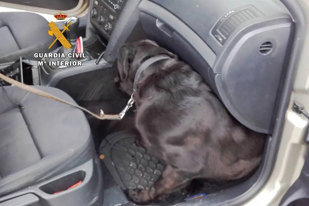 Al sospechar los agentes que pudiera haber más droga oculta en el vehículo, éste se inspeccionó con un perro de la Guardia Civil especialista en estupefacientes, que señaló la zona de la palanca de cambios, donde se localizó otra tableta de hachís.