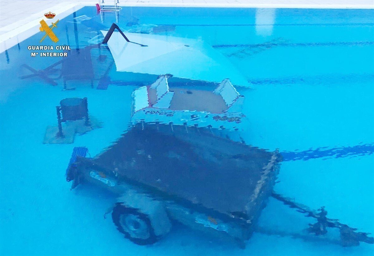 Los jóvenes rompieron un robot limpiafondos, esparcieron un producto químico y tiraron al interior de la piscina un remolque y un futbolín, entre otros daños