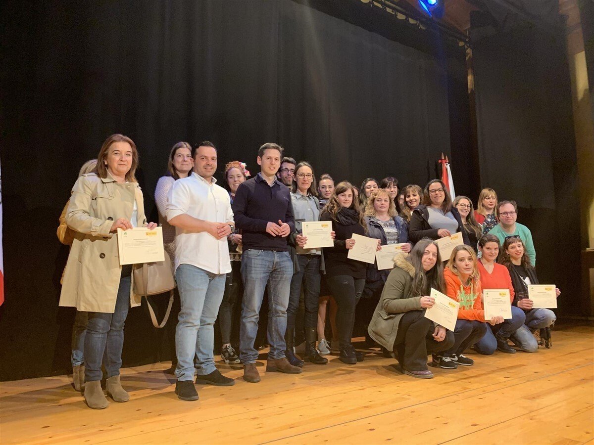 El presidente de la Mancomunidad, Mario Iglesias, y el concejal de Cultura de Reocín, Julio Ruiz de Salazar, presidieron el acto de entrega de los diplomas a los participantes.