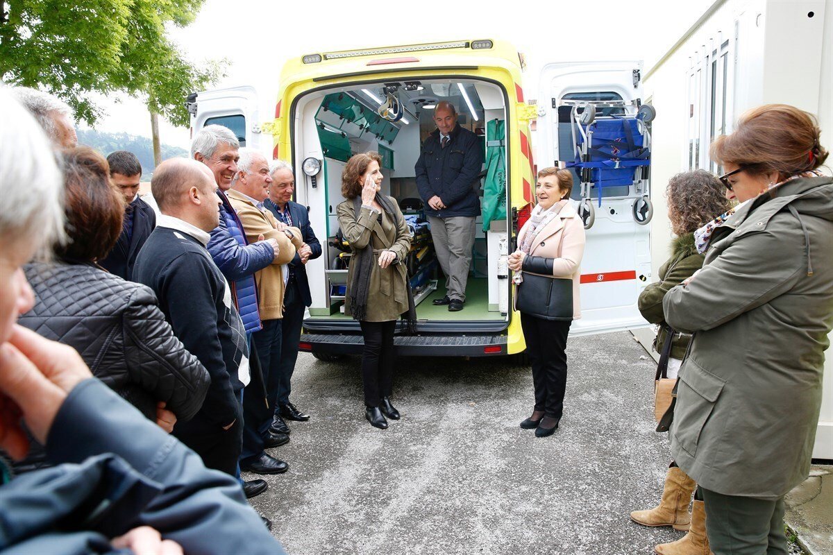La consejera de Sanidad, Luisa Real, ha presentado este miércoles el nuevo servicio de transporte sanitario urgente, una ambulancia de soporte vital básico (SVB), que con base en La Serna de Iguña dará cobertura a la Mancomunidad de los Valles de Iguña y Anievas.