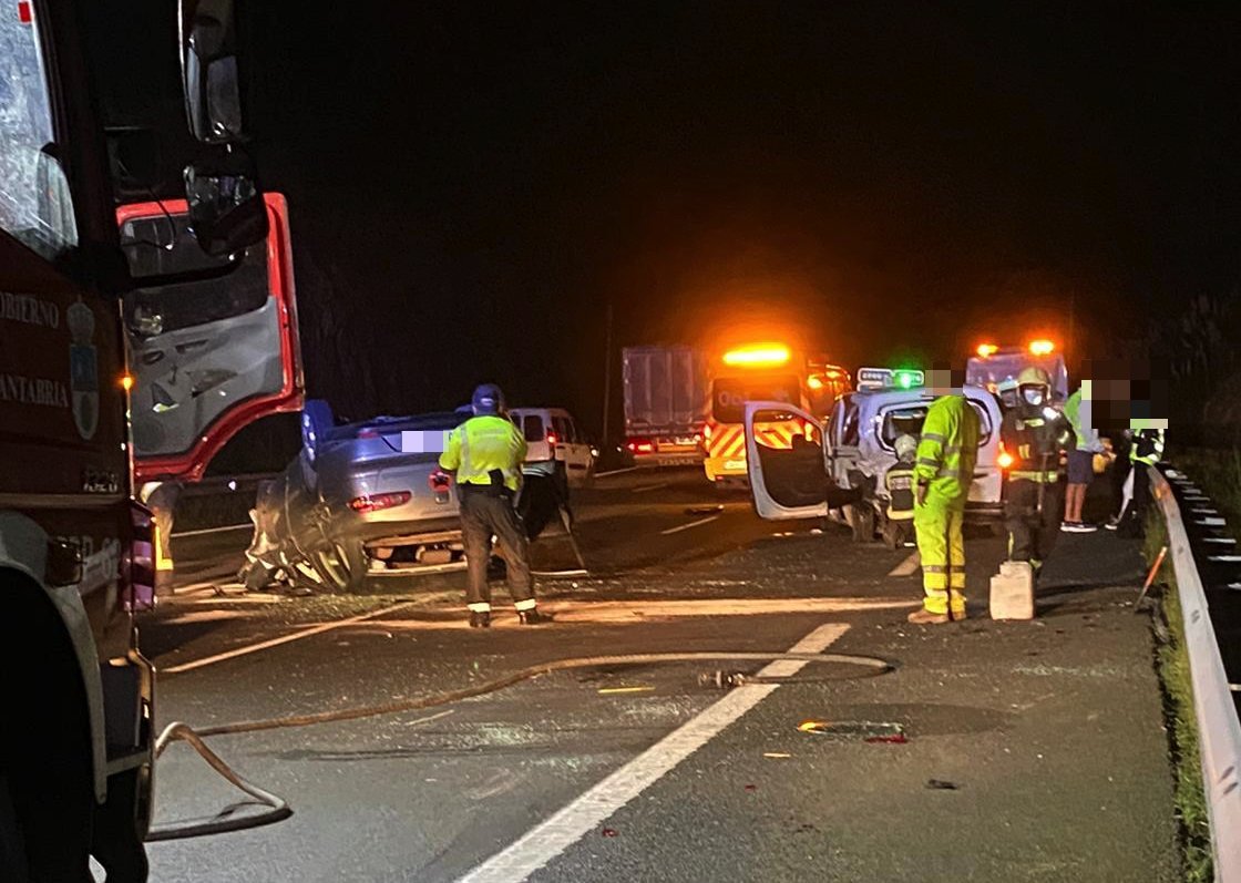 Pese a lo espectacular del accidente, con un vehículo que ha terminado volcado, según informa 112 Cantabria ninguno de los ocupantes ha requerido traslado por 061 Cantabria a centro médico.