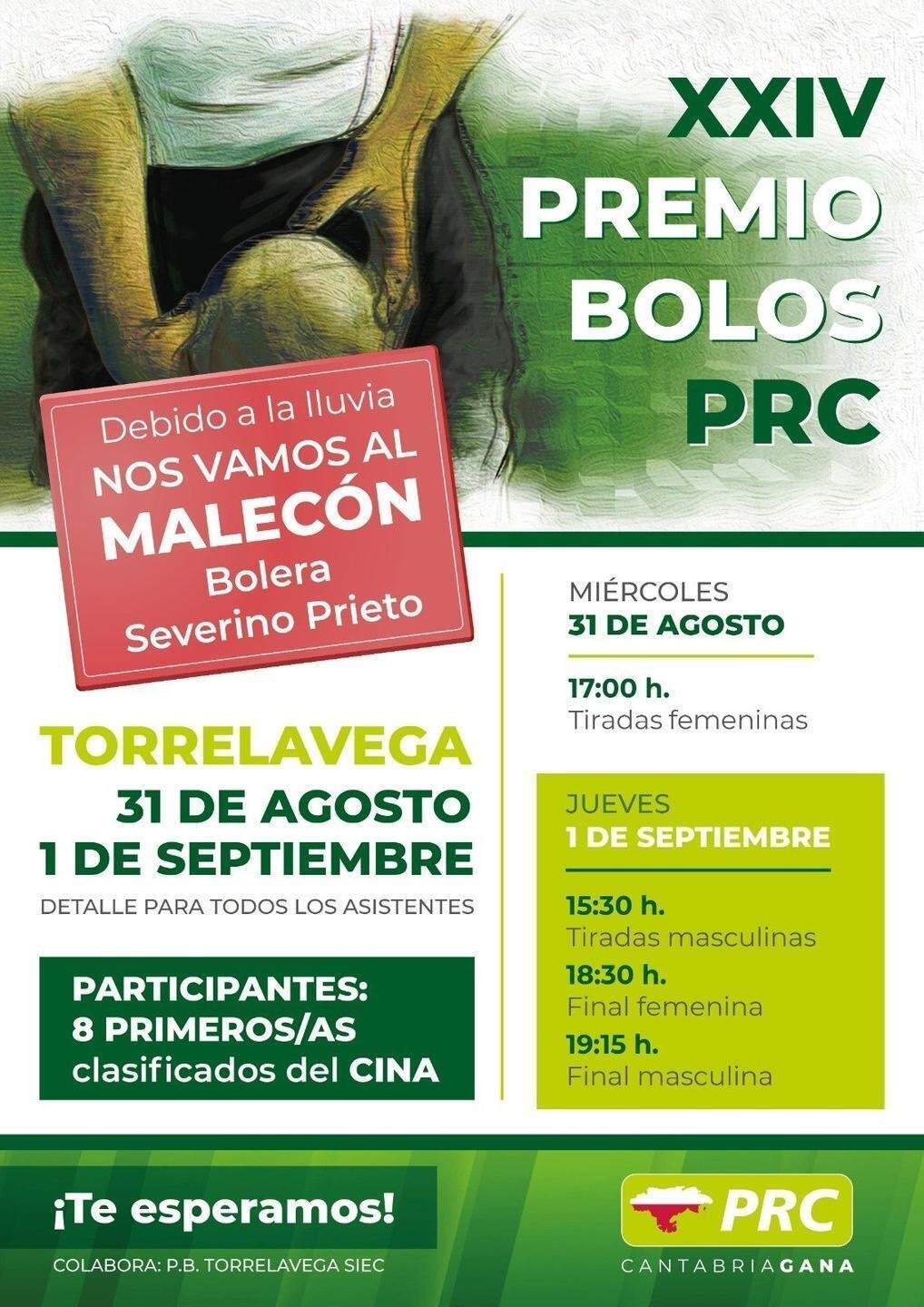 El tradicional Torneo de Bolos del Partido Regionalista de Cantabria (PRC), que se disputa este miércoles y jueves en Torrelavega, ha cambiado su ubicación a la bolera cubierta Severino Prieto por la previsión de lluvia.