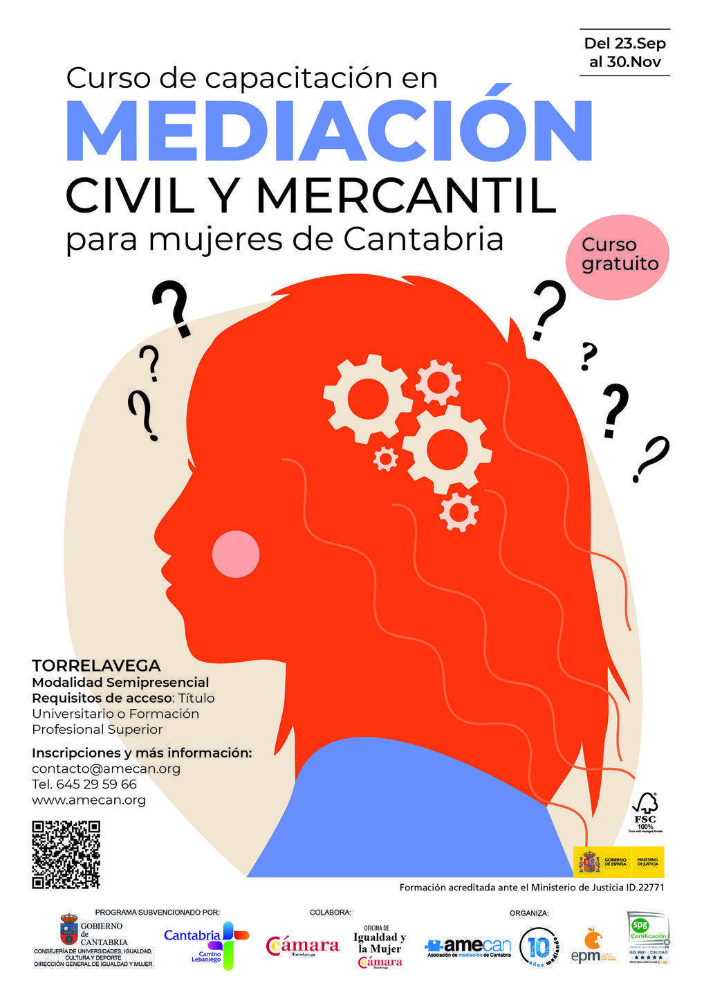El Curso de Mediación Civil y Mercantil para Mujeres en Cantabria se presentará este martes 14, a las 10.00 horas, en las instalaciones de Cámara Torrelavega.