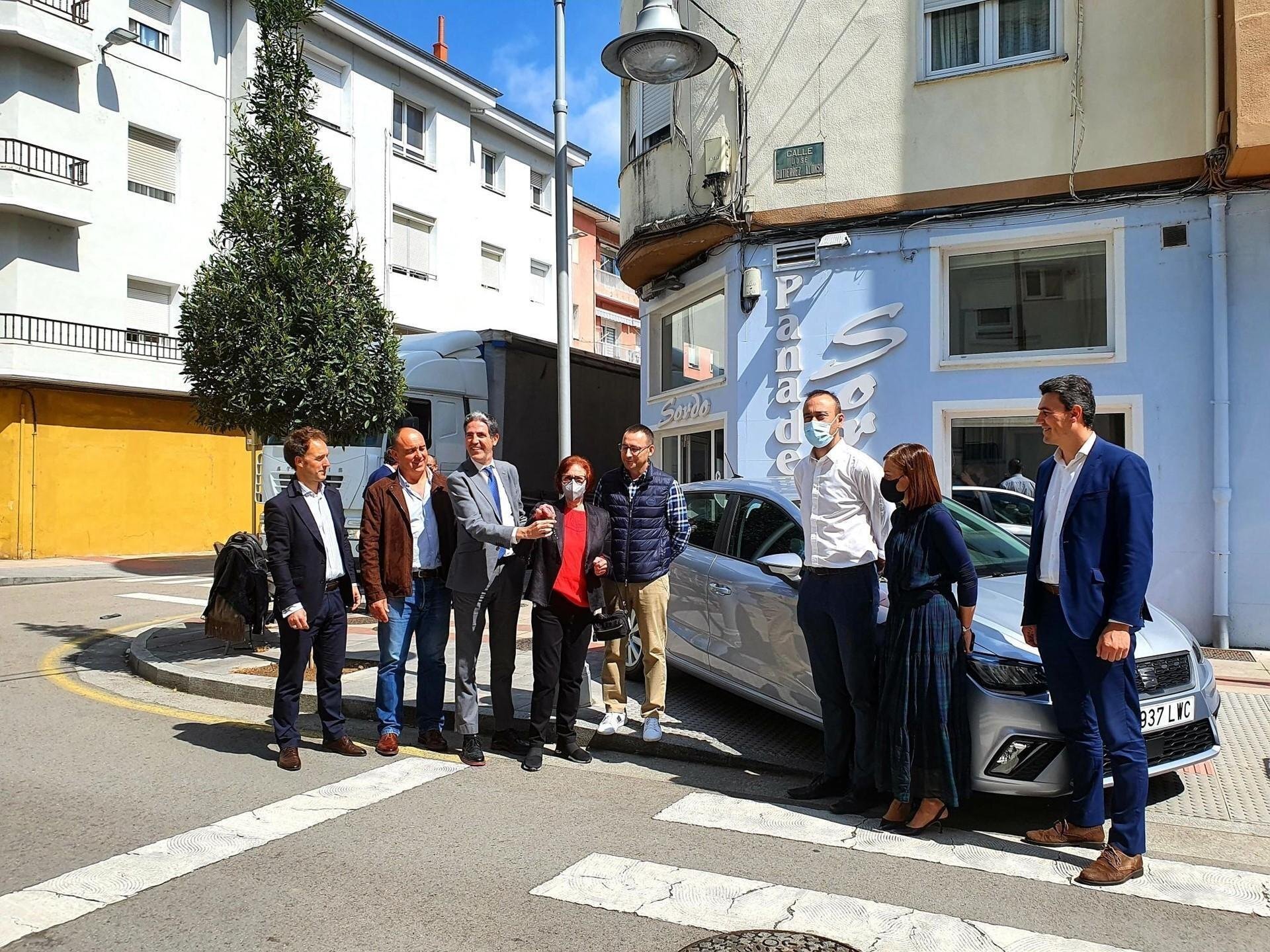 El alcalde, Javier López Estrada; el presidente de la Cámara de Comercio, Carlos Augusto, y representantes de la Corporación y la entidad cameral han sido los encargados de hacerle entrega de las llaves de su Seat Ibiza.
