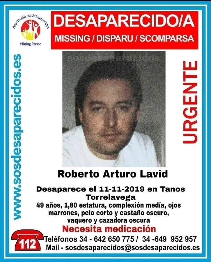 El desaparecido, Roberto Arturo Lavid, de 49 años, fue visto por última vez sobre las tres de la madrugada del 11 de noviembre, saliendo de una discoteca de Tanos (Torrelavega).